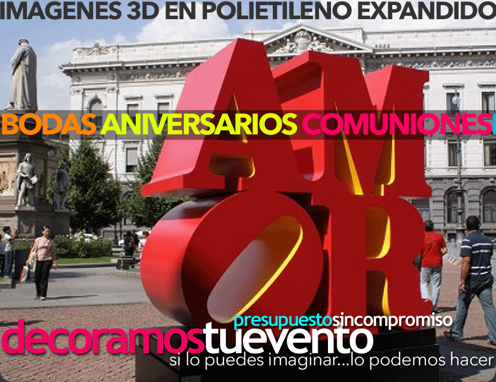 Rotulacion 3D para bodas,, letras de polietileno espandido, poliespan, corcho blanco, figuras, decorados, letras en tres dimensiones con profundidad, titulos y letreros en 3d para cocktail de bienvenida en Bilbao, Bizkaia, Alava, Vitoria, Euskadi, Pais Vasco, Burgos, Valladolid, Castilla y Leon, Santander, Cantabria, Logroño, La Rioja, Gijón, Oviedo, Asturias, Madrid, Barcelona, Zaragoza, Aragon, Valencia, Malaga, Sevilla, Extremadura. Decorados para bodas. Letras para bodas de máxima calidad en polietileno espandido (poliespan, corcho blanco, porexpan) del tamaño que usted lo necesite para decorar bodas, eventos, comuniones, presentaciones en ferias de muestras y exposiciones o en el cine, la television o el teatro. Podemos hacer todo lo que usted imagine. Letras que se apoyan en el suelo con la altura que nos pida y objetos de cualquier tipo siempre que esten hechos en polietileno espandido mas conocido por la marca poliespan, porexpán, espuma, corcho blanco o poliestireno. Trabajos a medida para bodas, decorados, ferias, convenciones, eventos, exposiciones, Acabados especiales de lujo y letras con luz.